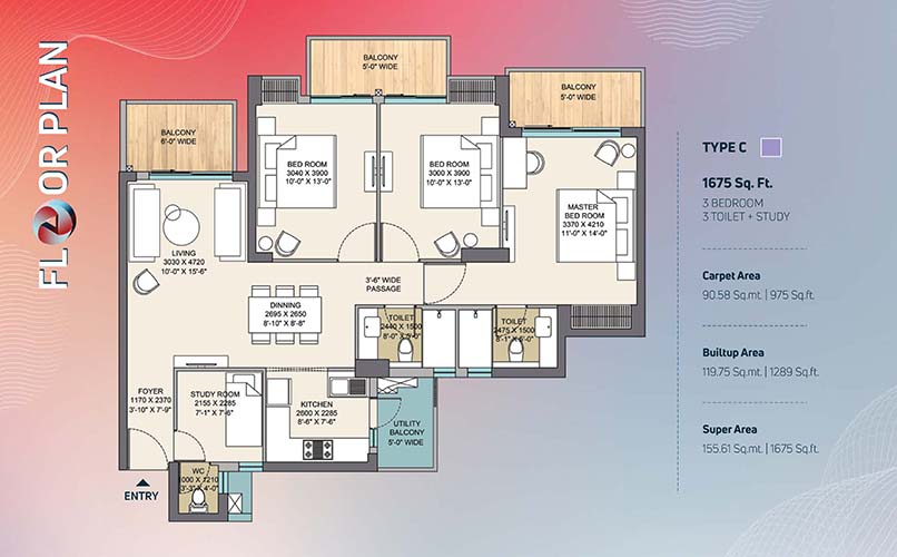 VITRIFIED TILES: - Drawing Room, Kitchen, Study Room, and all Bedrooms, Ceramic tiles in Bathrooms and Balconies.